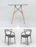 Mesa Eames Glass 80cm + 2 Sillas Neo Negras | Pickear