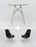Mesa Eames Glass 80cm + 2 Sillas Umma Negras. Un Kit ideal para cocinas pequeñas o espacios reducidos. Es perfecto para living en mono ambientes, y también para sumar un espacio de comodidad en cualquier lugar de tu casa. Es funcional, económico y siempre le brindará un toque de diseño moderno a tu hogar.